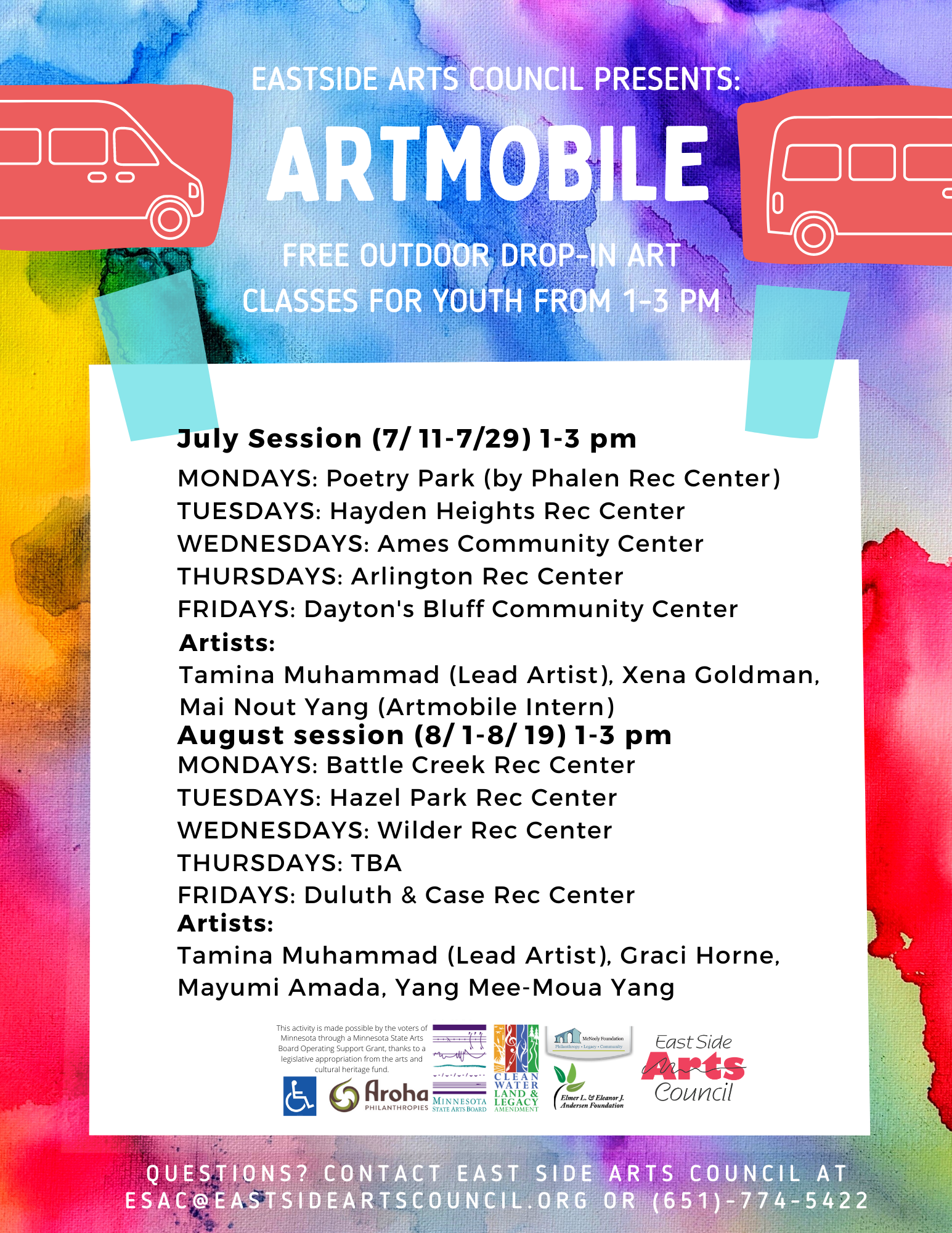 Film your concern logo displayed on the Artmobile as it winds around the streets of Eastward Saint Paul, bringing joy and inventiveness to East Side children and families.